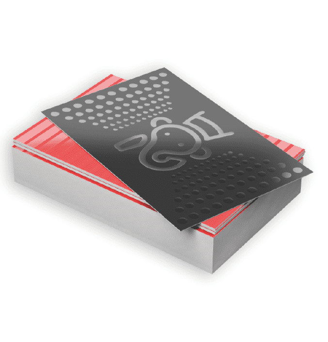 High-end business cards are made from uncoated 32pt cardboard with painted edges for a unique effect.