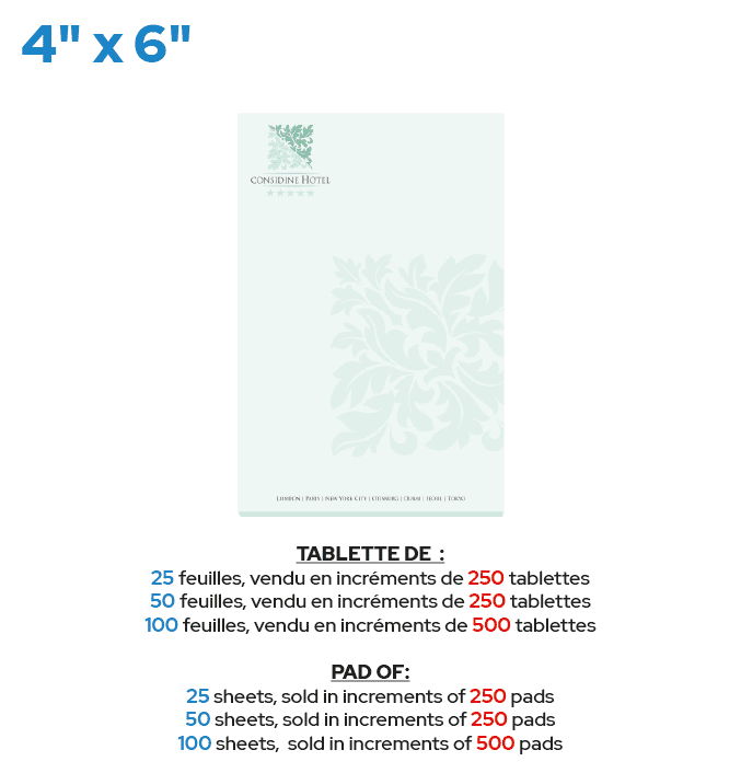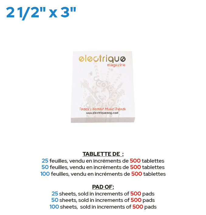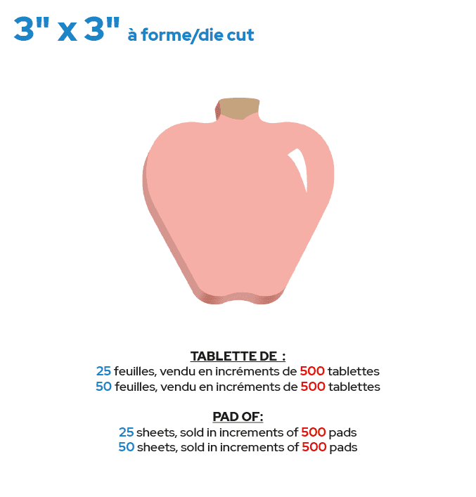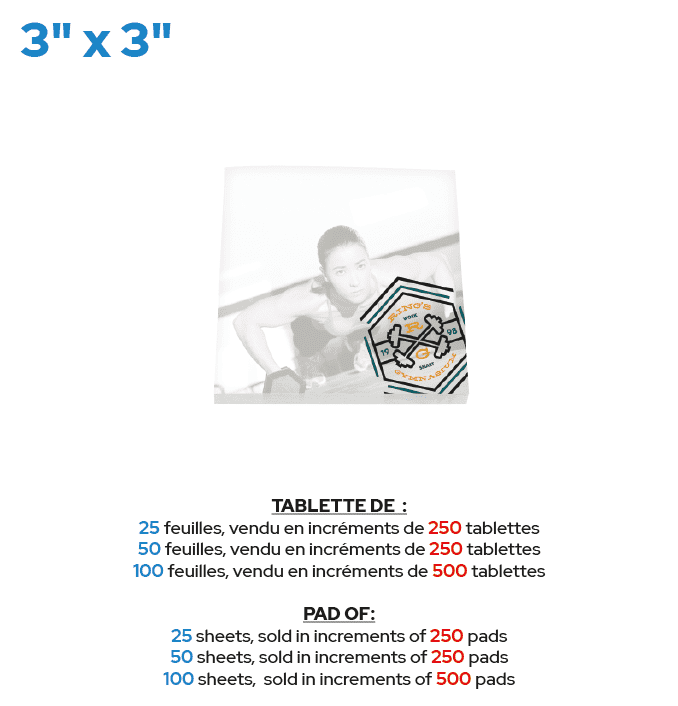 Quantity: sold in increments of 250 or 500 pads, depending on the size