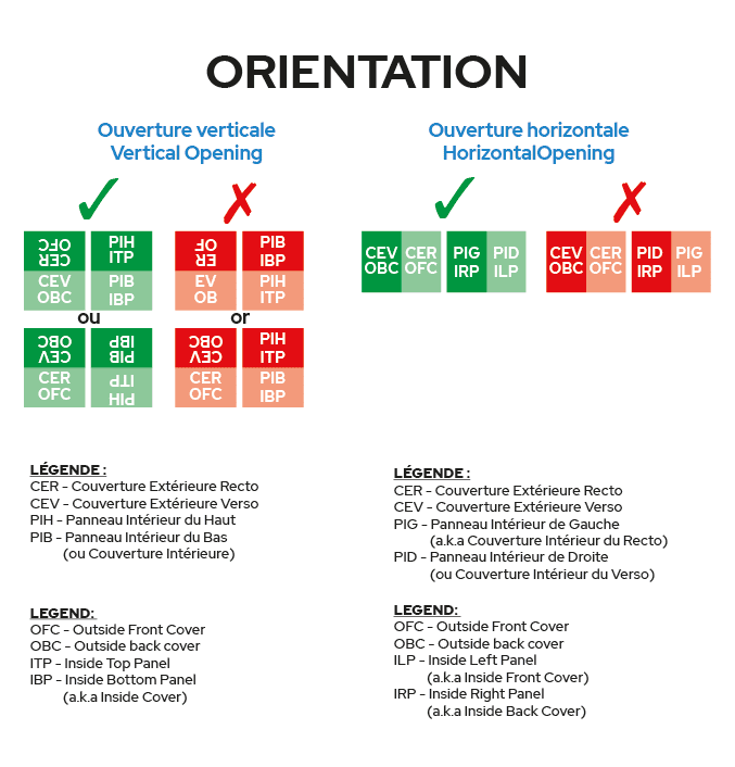 Papier : carton 14pt couché standard avec mat ou ultra lustré, 13pt Enviro (papier recyclé 100%)