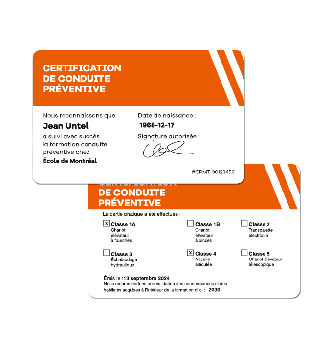 Nous pouvons offrir le service d'impression de cartes servant de preuve de certification, de compétence ou de formation. Les cartes peuvent inclure la photo de la personne détentrice.
